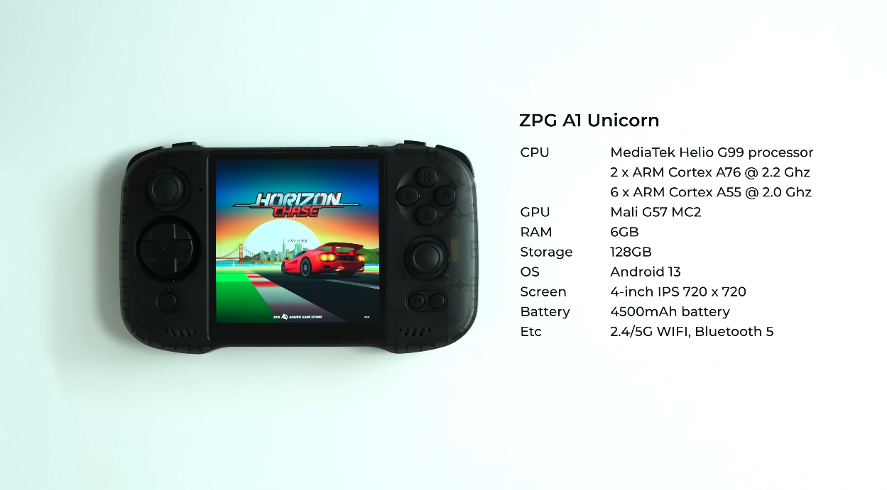 ZPG A1 유니콘 휴대용 게임 콘솔 안드로이드 13 레트로 PS2 와 호환 4 인치 터치 스크린 4500mAh 6 + 128GB