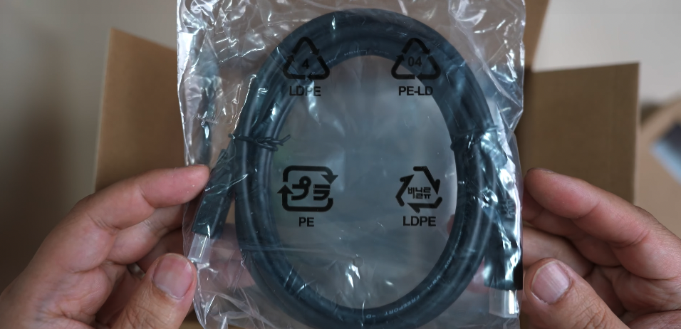 HDMI 케이블과 전원 케이블이 들어 있는데
