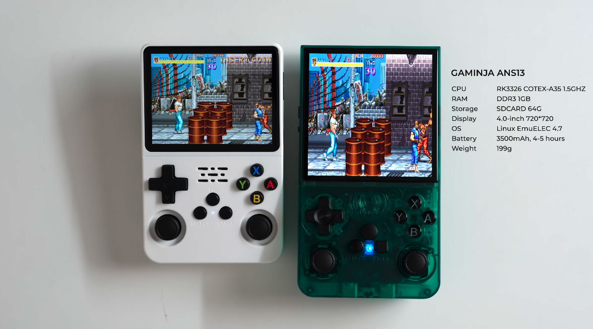 GAMINJA ANS13 4.0 Inch IPS Screen Retro Handheld Video Game Console 15000+ Games Built-in Linux Portable Pocket Gaming Console -