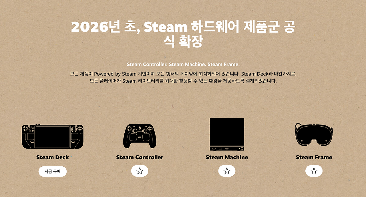 2026년 초, Steam 하드웨어 제품군 공식 확장